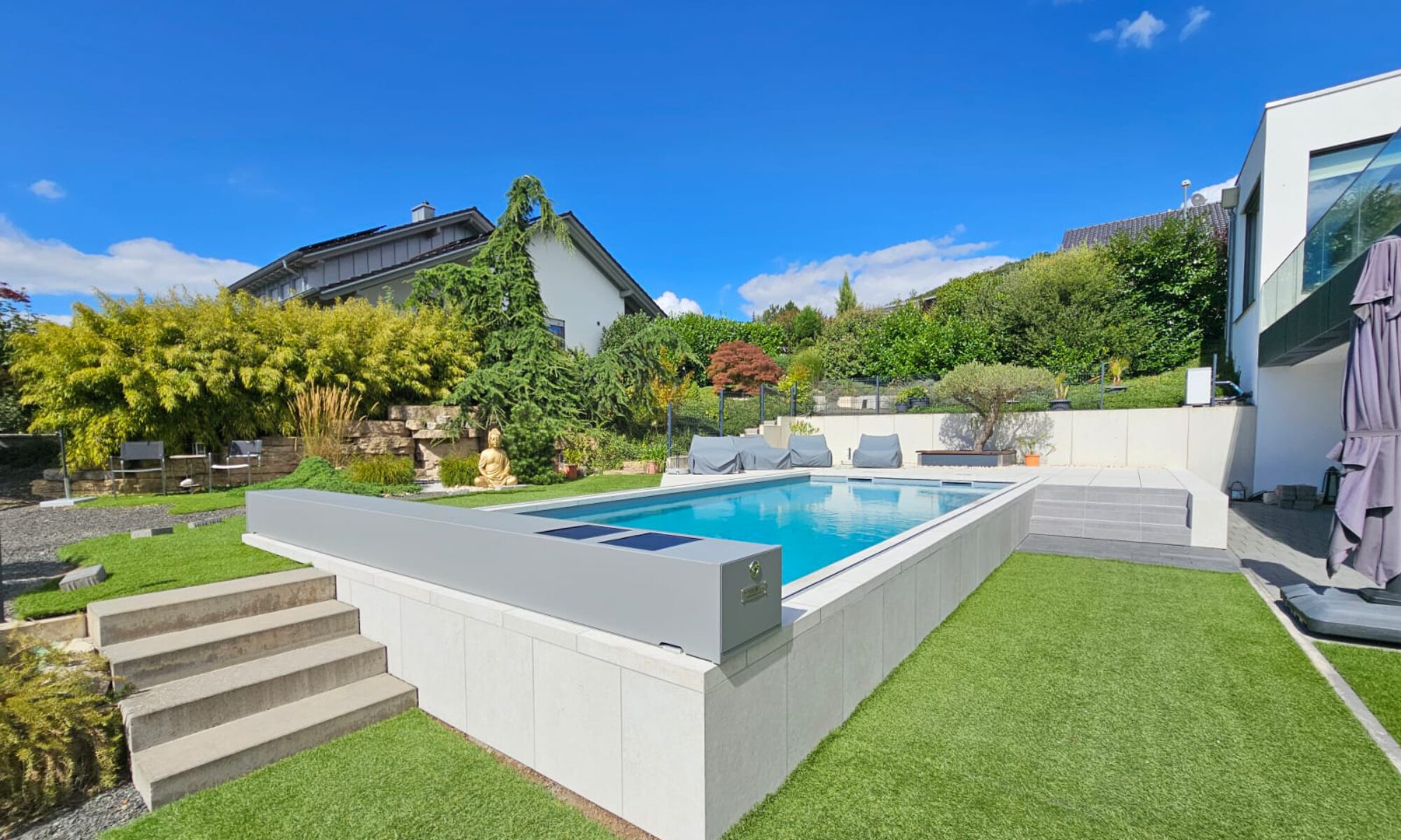 Durch das Zusammenspiel moderner Technik und natürlicher Filteranlagen erzielen wir eine kristallklare Wasserqualität. Das Wasser reinigt und regeneriert sich in naturnahen Kreisläufen, unterstützt durch sorgsam bepflanzte Randbereiche, die nicht nur ästhetisch überzeugen, sondern aktiv zur Klärung beitragen. Diese biologische Reinheit ist ein Gewinn für jeden Gartenbesitzer und bietet besonders für Allergiker, empfindliche Menschen und Kinder ein unvergleichlich sanftes Badeerlebnis.